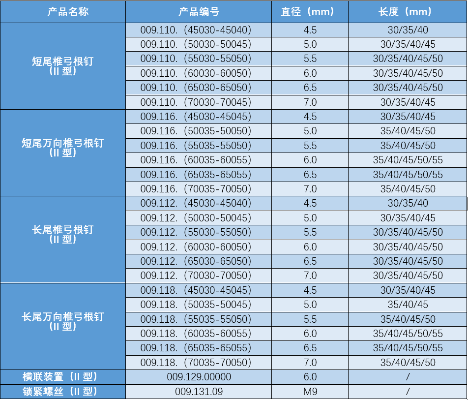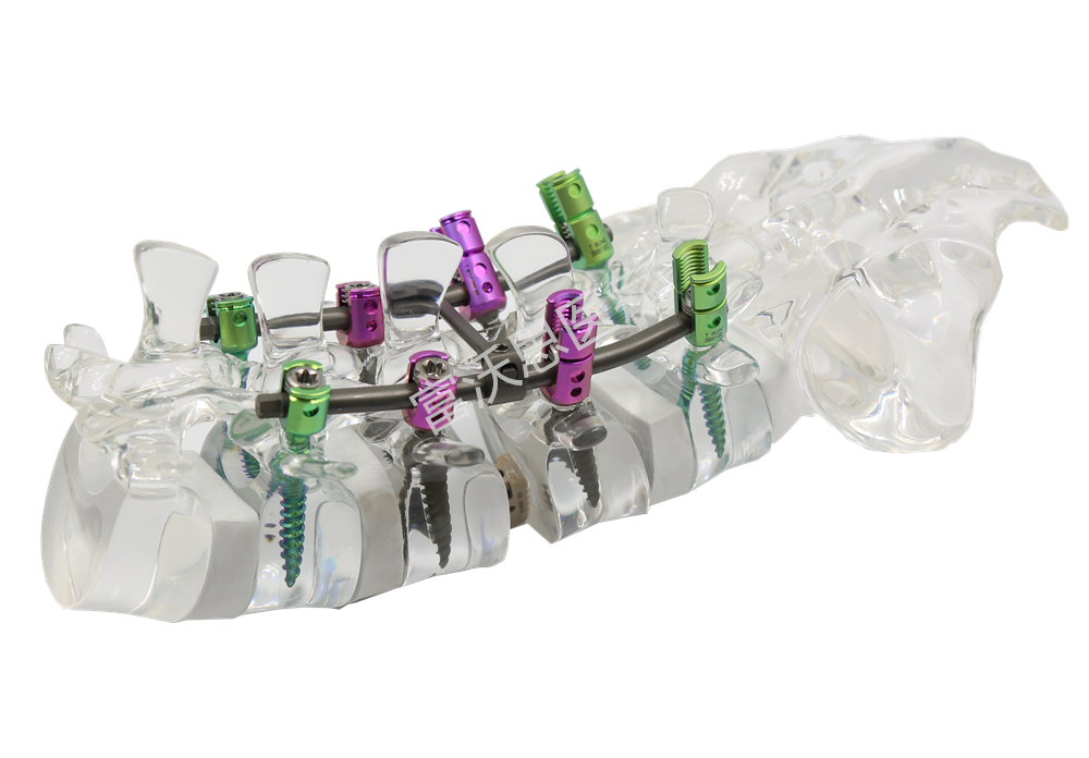 胸腰椎釘棒內(nèi)固定系統(tǒng)由椎弓根釘、長(zhǎng)尾椎弓根釘、短尾椎弓根釘、微創(chuàng)萬向椎弓根釘、棒、橫連裝置、 鎖緊螺帽、固定塊和金屬鉤等組成。適用于脊柱胸腰椎骨折、滑脫、退行性變、畸形、椎間盤突出、椎管狹窄等內(nèi)固定。