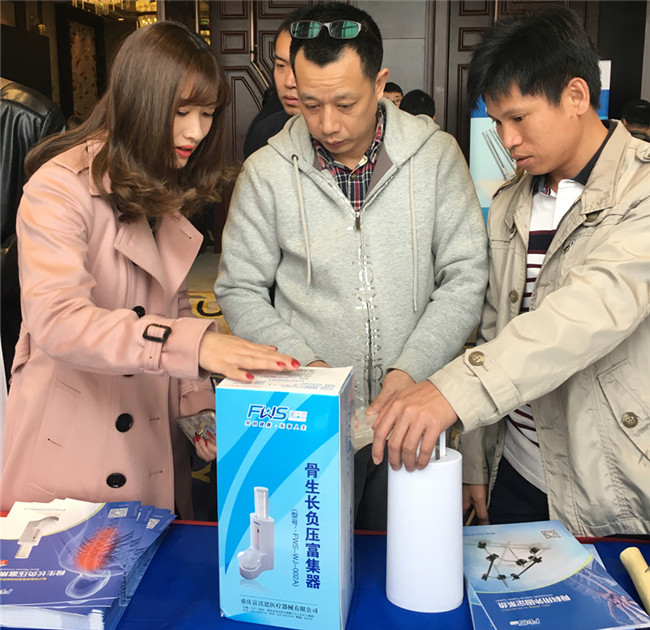 重慶富沃思醫療做為國內知名骨科耗材生產廠商,受邀參加了本次大會并攜國內獨家高科技產品“骨生長負壓富集器”高調亮相。一直以來,由于骨感染或創傷而導致的骨不連、骨缺損成為重大難題。膜誘導技術為骨提供了良好的成骨環境,使骨缺損快速修復尤其是大節段骨缺損的快速修復成為可能,但其瓶頸是骨源問題。